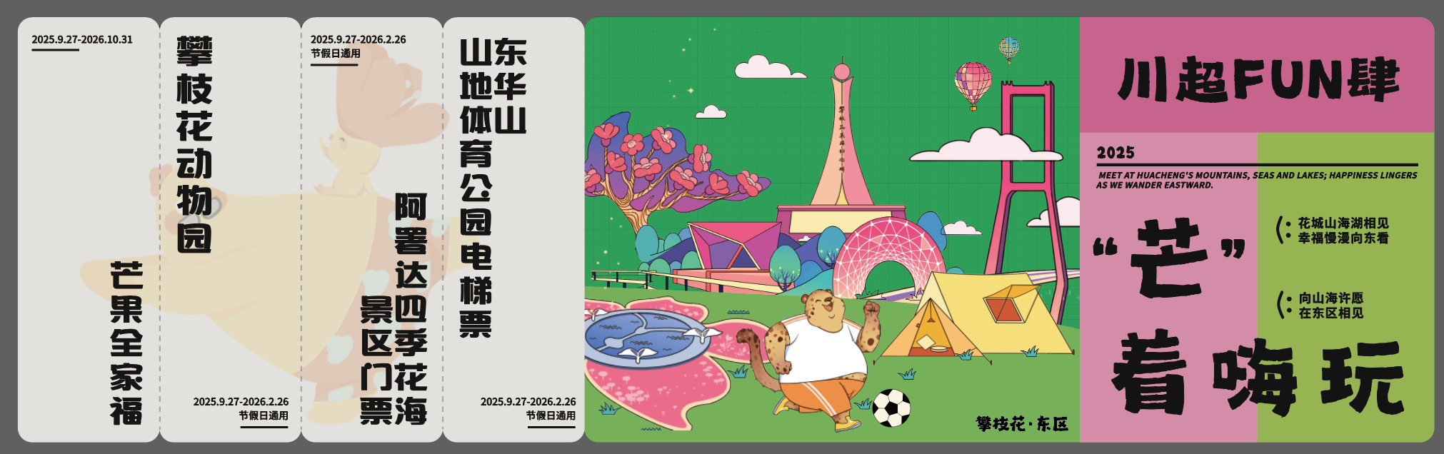 在沉浸式巡游时,攀枝花市东区将沿途派发文创小礼物,同时,随机派发10000个芒果福袋、10000个芒果认领券、东区“川超”文旅地图、山海湖宝藏攻略等礼品。此外,还有阿署达四季花海景区、东华山山地体育公园电梯、攀枝花公园等景区门票,共计300张。